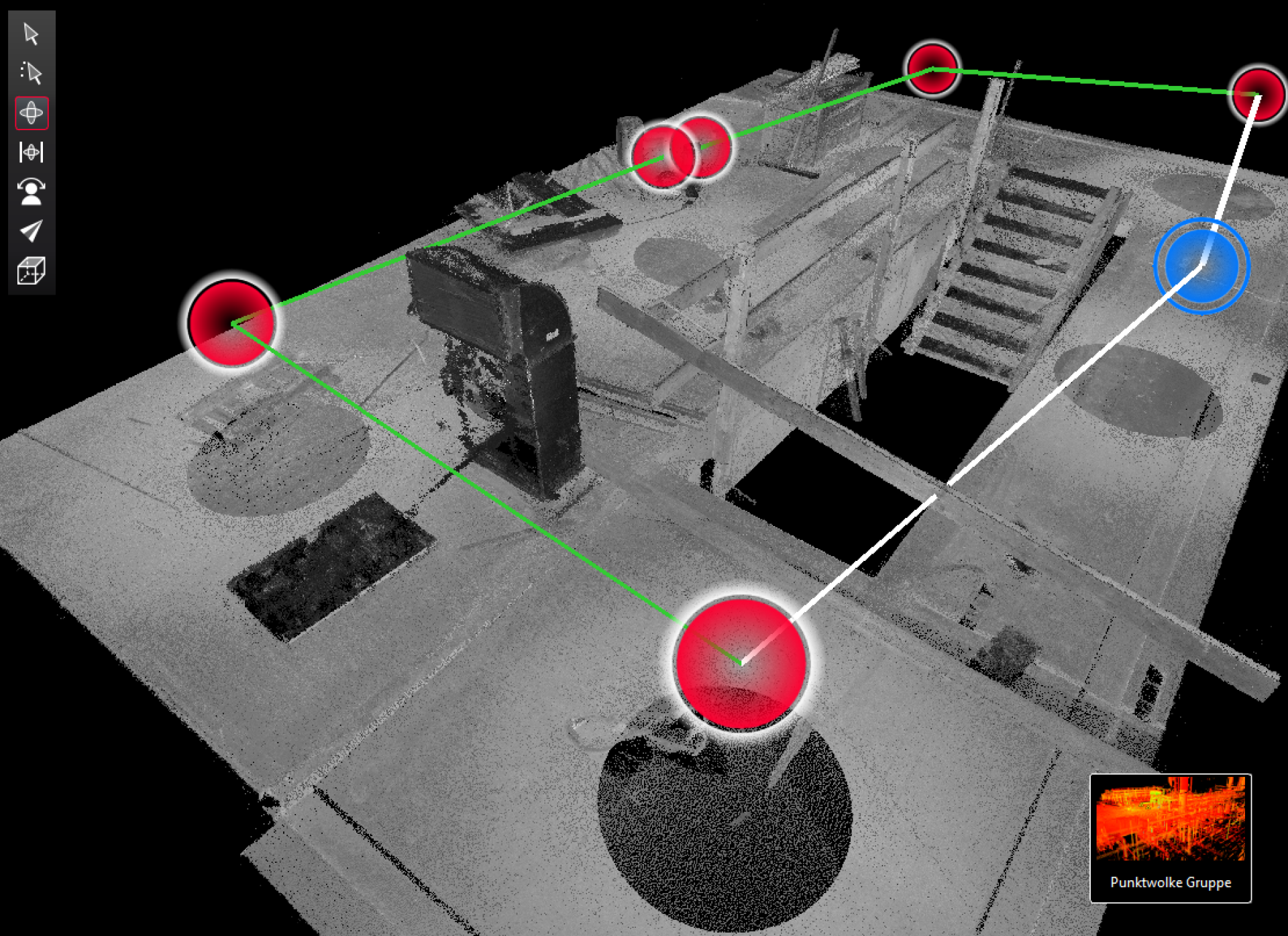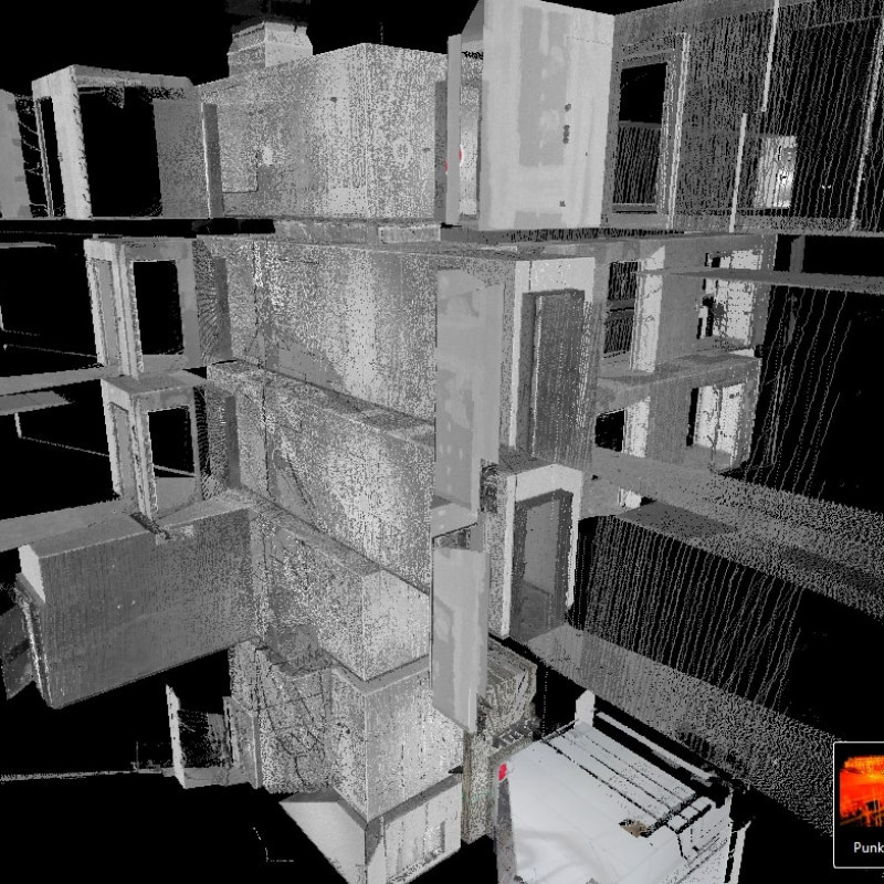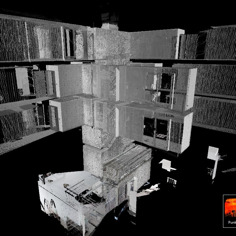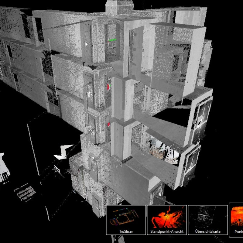 Wir erfassen den Bestand direkt vor Ort mit modernster 3D-Laserscantechnologie und werten die Daten anschließend im Büro aus.